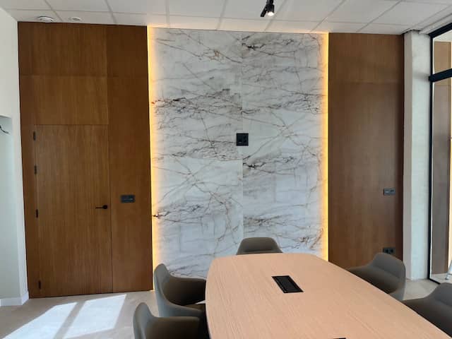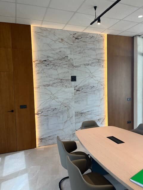 Montajes eléctricos, telecomunicaciones e iluminación led en oficina de ventas Pryconsa en Isla Canela (Huelva).